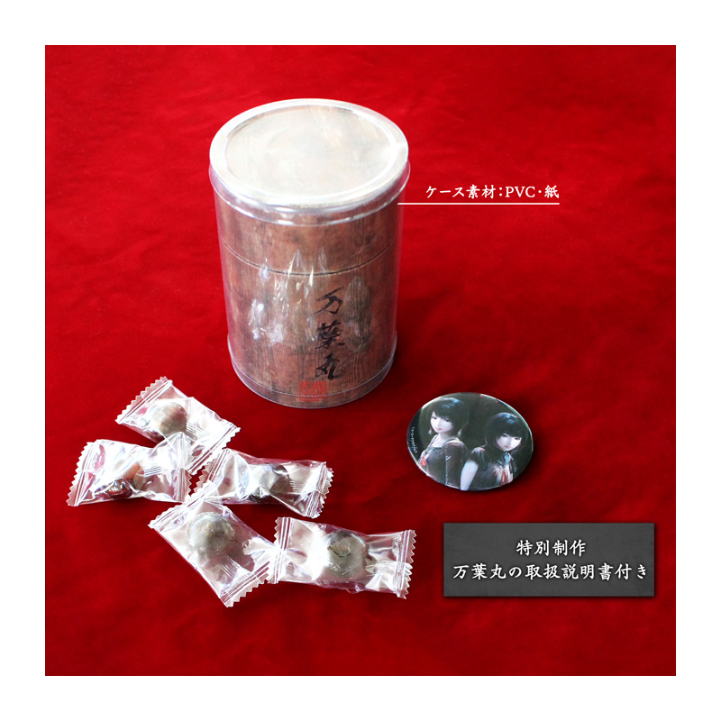 万葉丸をイメージした黒飴とともに、特別制作の万葉丸の取扱説明書、缶バッジが付属します。