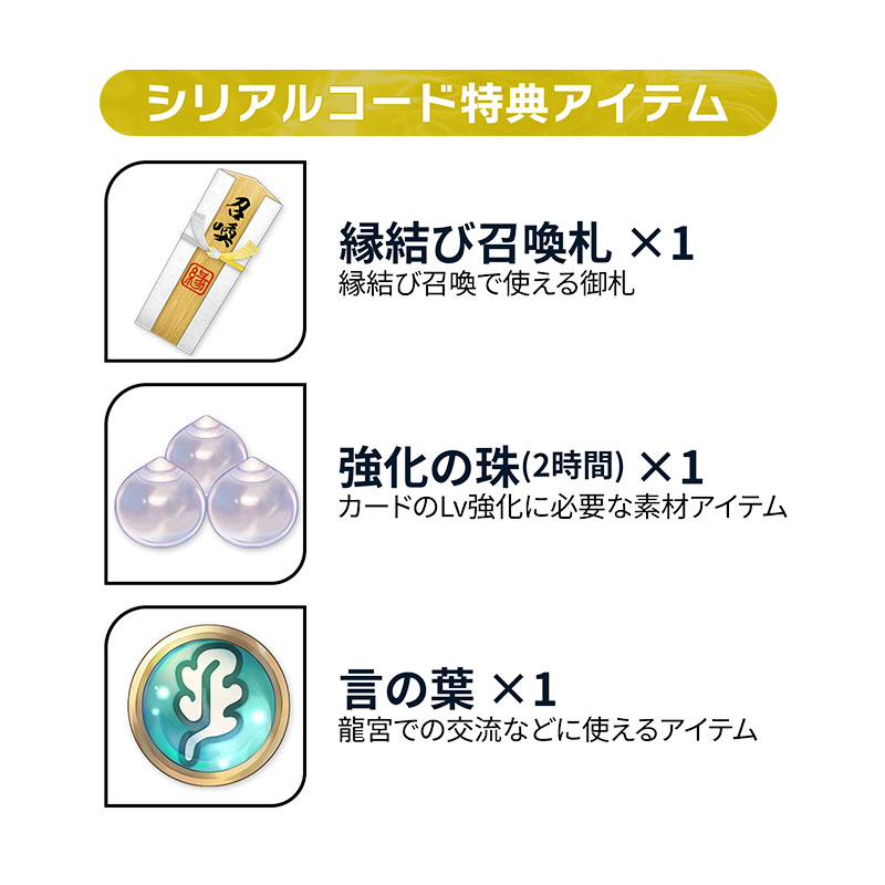 ※本特典のシリアルコードで入手できるアイテムの受け取りは、1アカウントにつき30回限りとなります。